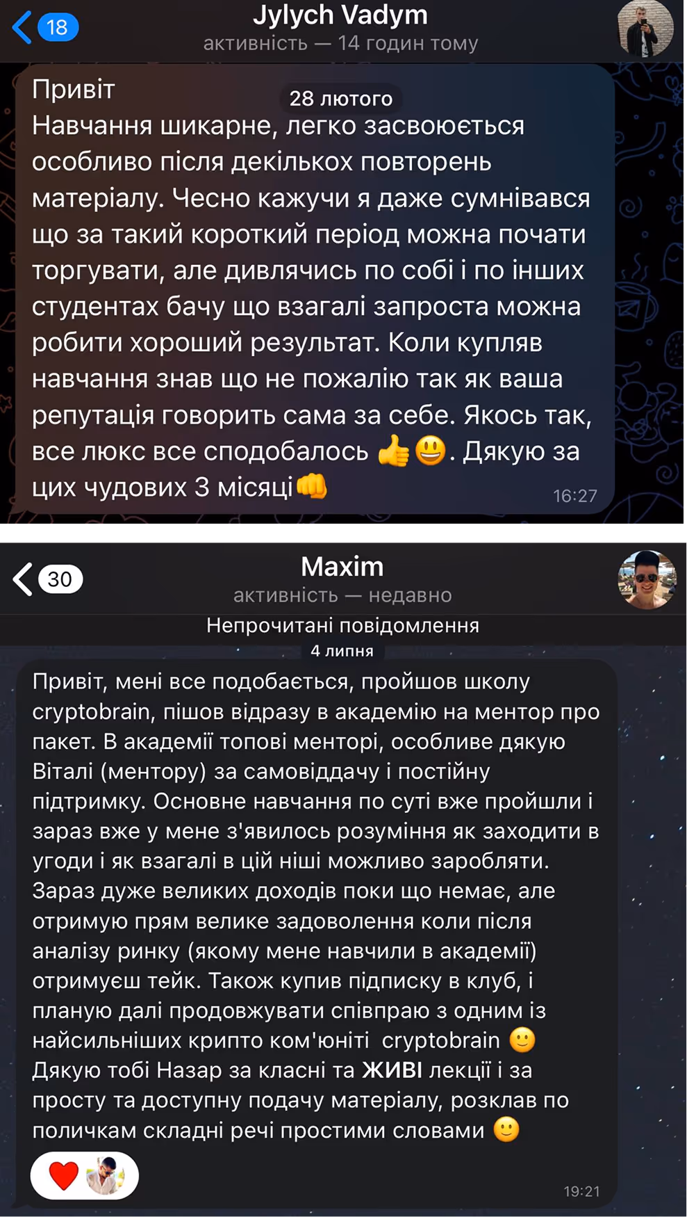 Так. Ментори повністю розбирають вашу ситуацію, визначають, де є помилки та, що потрібно підтягнути. І повністю від початку до кінця навчання відшліфовують вашу торгову стратегію.